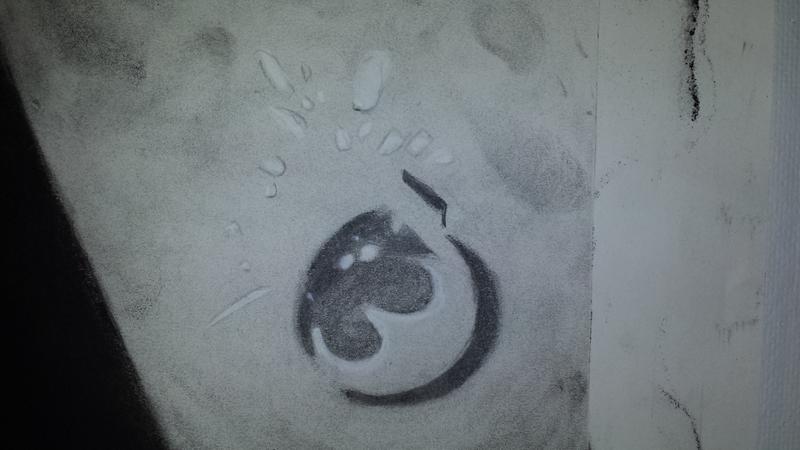 Detail of "Three Objects": stylized diamond engagement ring, its shadow, and light refracted from the gemstone, November 2017